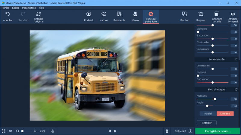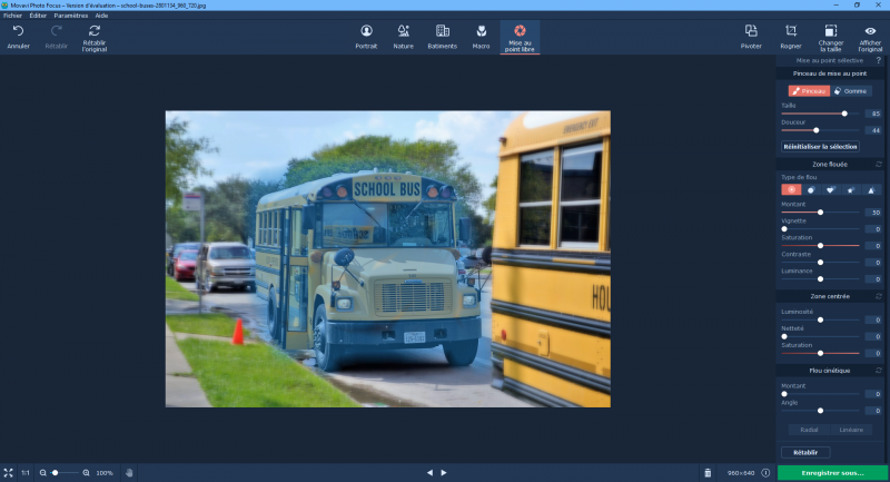 Prenons l’exemple de bus scolaire américain. Pour lui appliquer un effet de mouvement, il faut utiliser la mise au point libre.