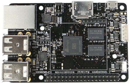Avec l’Odroid C2 On monte en gamme. Cette alternative au raspberry dispose d’un processeur vidéo Mali 450. Il supporte lui aussi l’Ultra Haute Définition mais jusqu’à 60 images par seconde par rapport aux précédents nano-ordinateur. Son processeur 4 cœurs 64 bits est cadencé à 1.5 Ghz et pour ce qui est de la RAM, vous pouvez compter sur 2Go. L’Odroid C2 dispose d’une puce Bluetooth et d'un slot de cart SD à partir duquel vous pouvez installer plusieurs OS dont différentes distributions Linux et Android. Cette alternative plus puissante vous coûtera environ 85 euros.